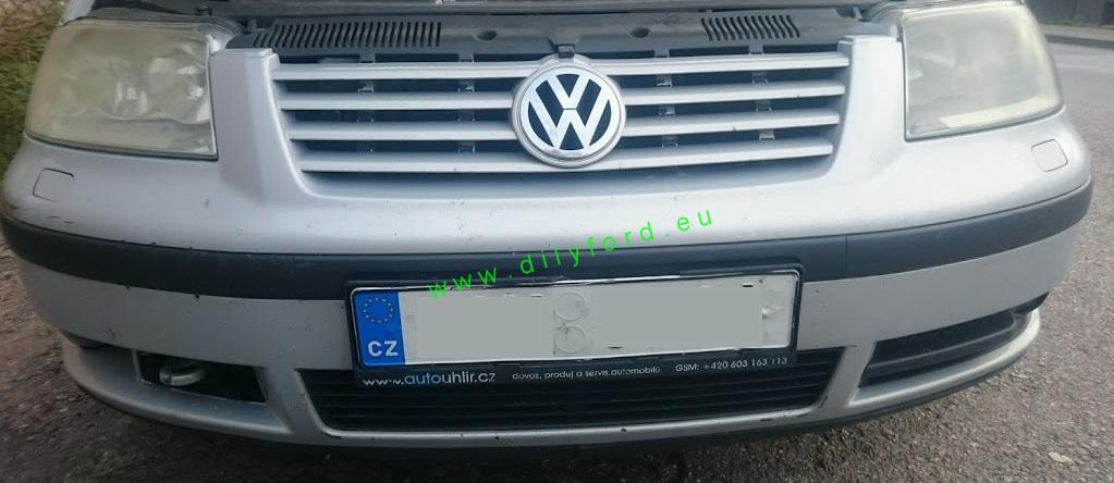 Přední nárazník pro vozy Sharan 5/2000-10/2003. Použitý - tak jak je na foto - bez mlhovek - chybí pravá mřížka kolem mlhovky.