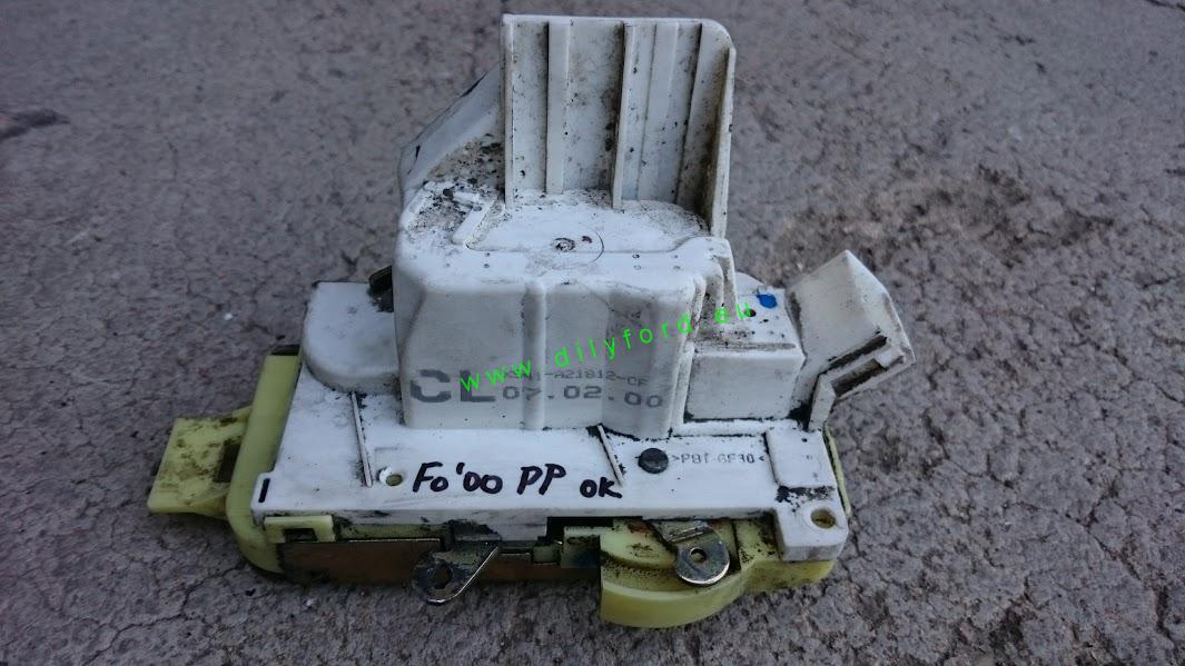 Mechanismus zámku pravých předních dveří s motorkem centrálu na Focus MkI.